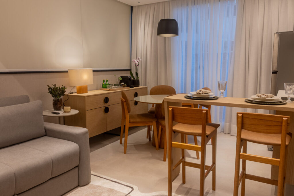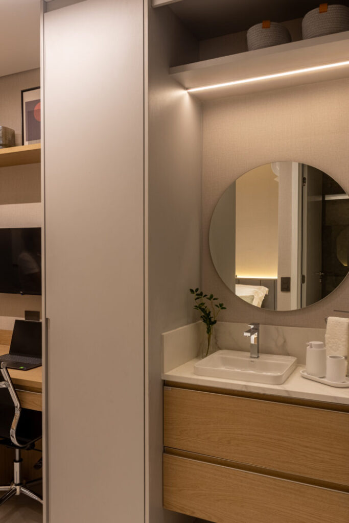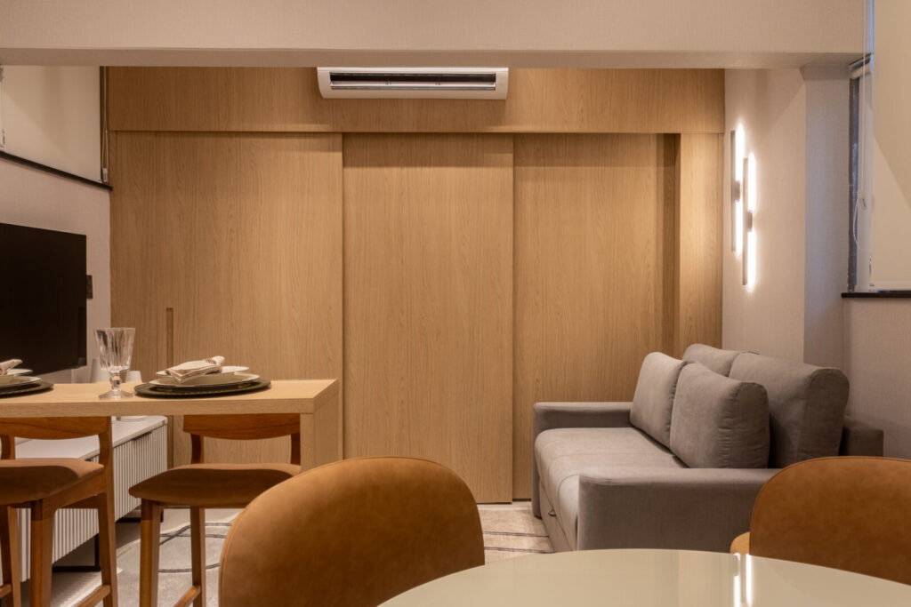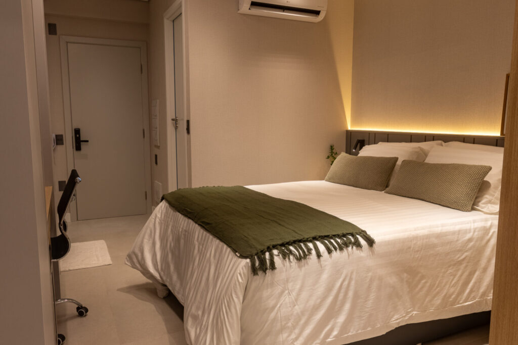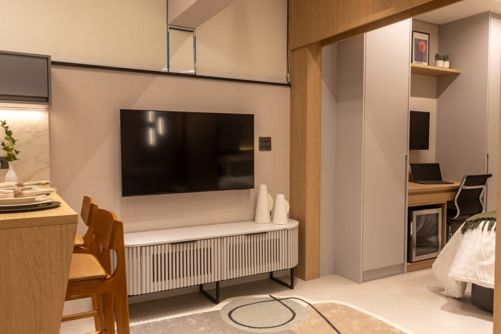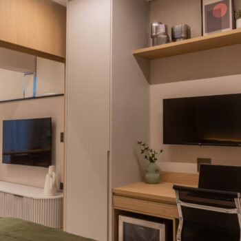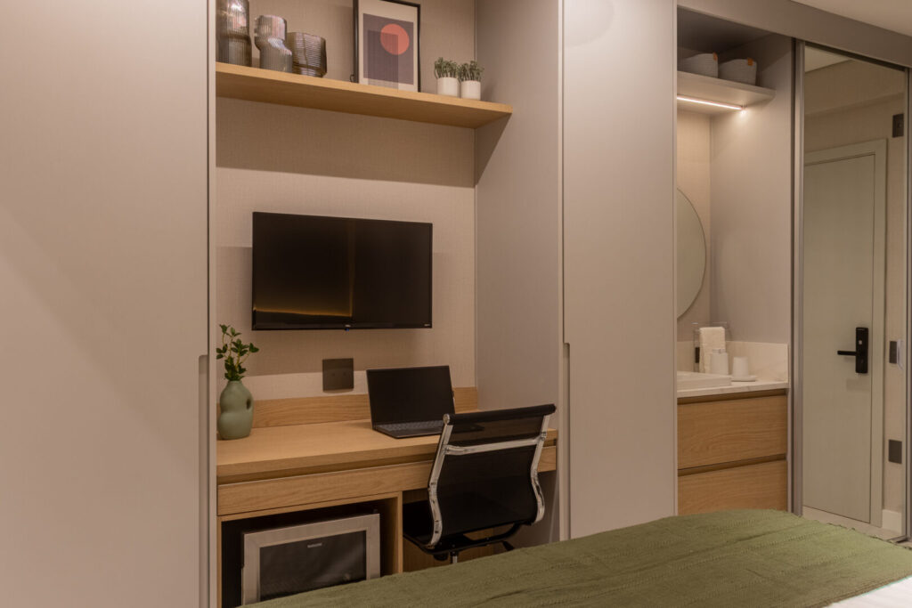 Um apartamento Studio, no coração do bairro do Jardins em SP. Seus 20m² contam com espaço para banheiro, dormitório e área de office e cozinha integrados. Detalhe, este apartamento é um Garden, ou seja, tem uma área externa a ser contemplada. Acrescenta 20m² neste espaço e o resultado é o que você pode conferir nas imagens abaixo. 40m² integrados que passam a ter disponível sala de TV com cozinha integrada e junto, uma varanda ao final do apartamento para contemplar a luz do sol poente próximo a avenida Paulista.